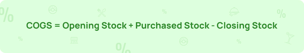 COGS Percentage = (Opening Stock + Purchased Stock – Closing Stock)/ Food Sales
